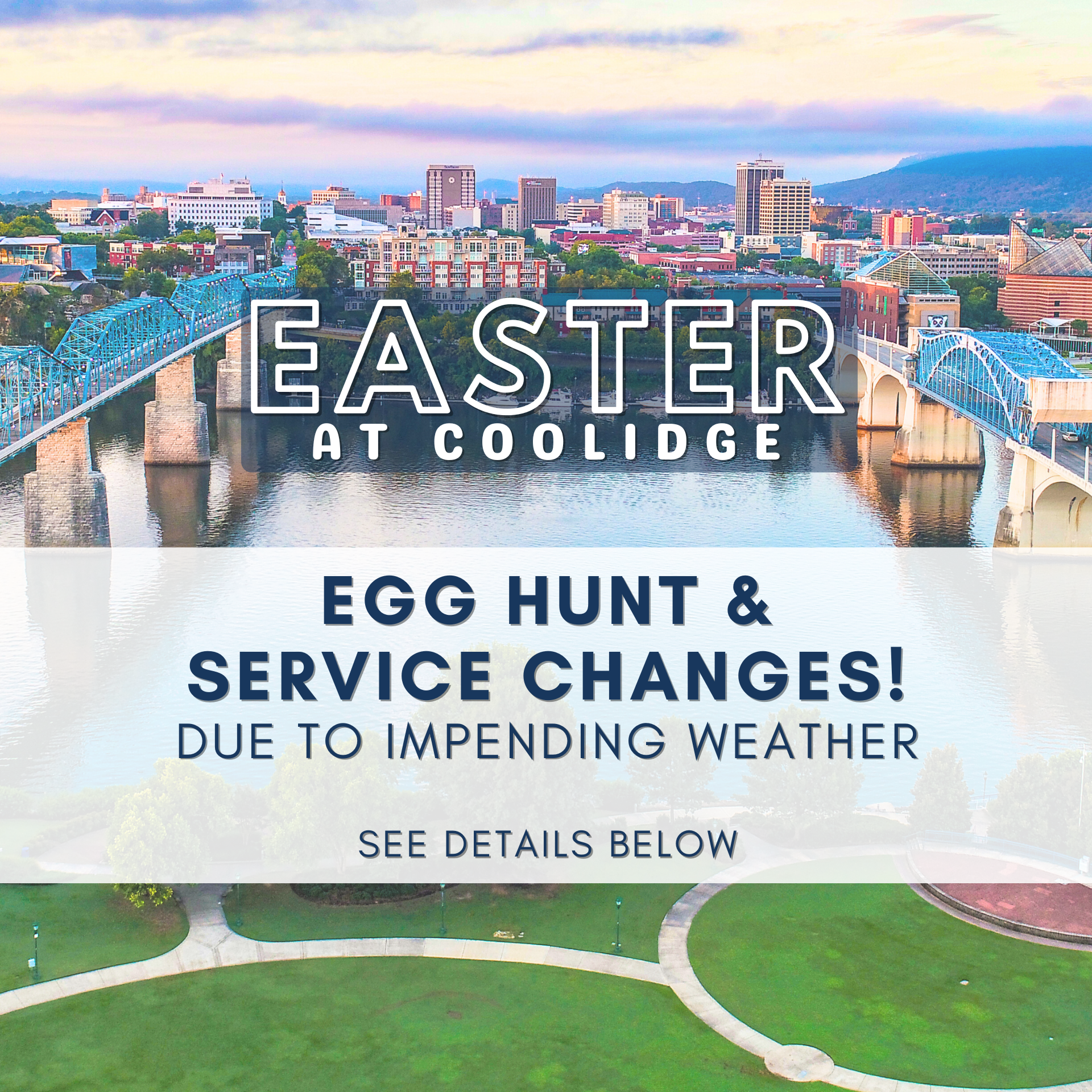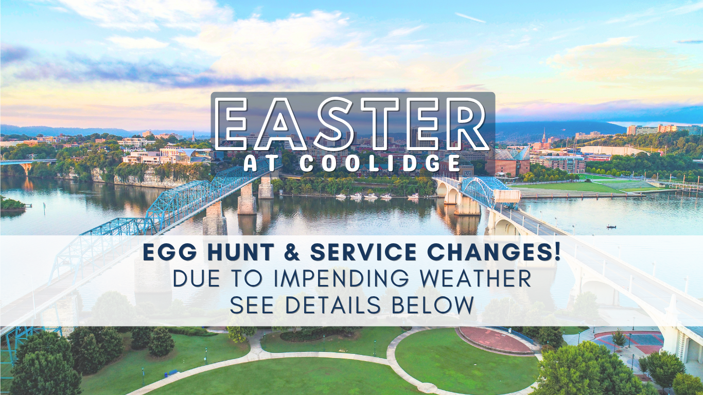 Due to weather conditions, we have made the very difficult decision to cancel this year's Easter at Coolidge egg hunt and outdoor service in the park.